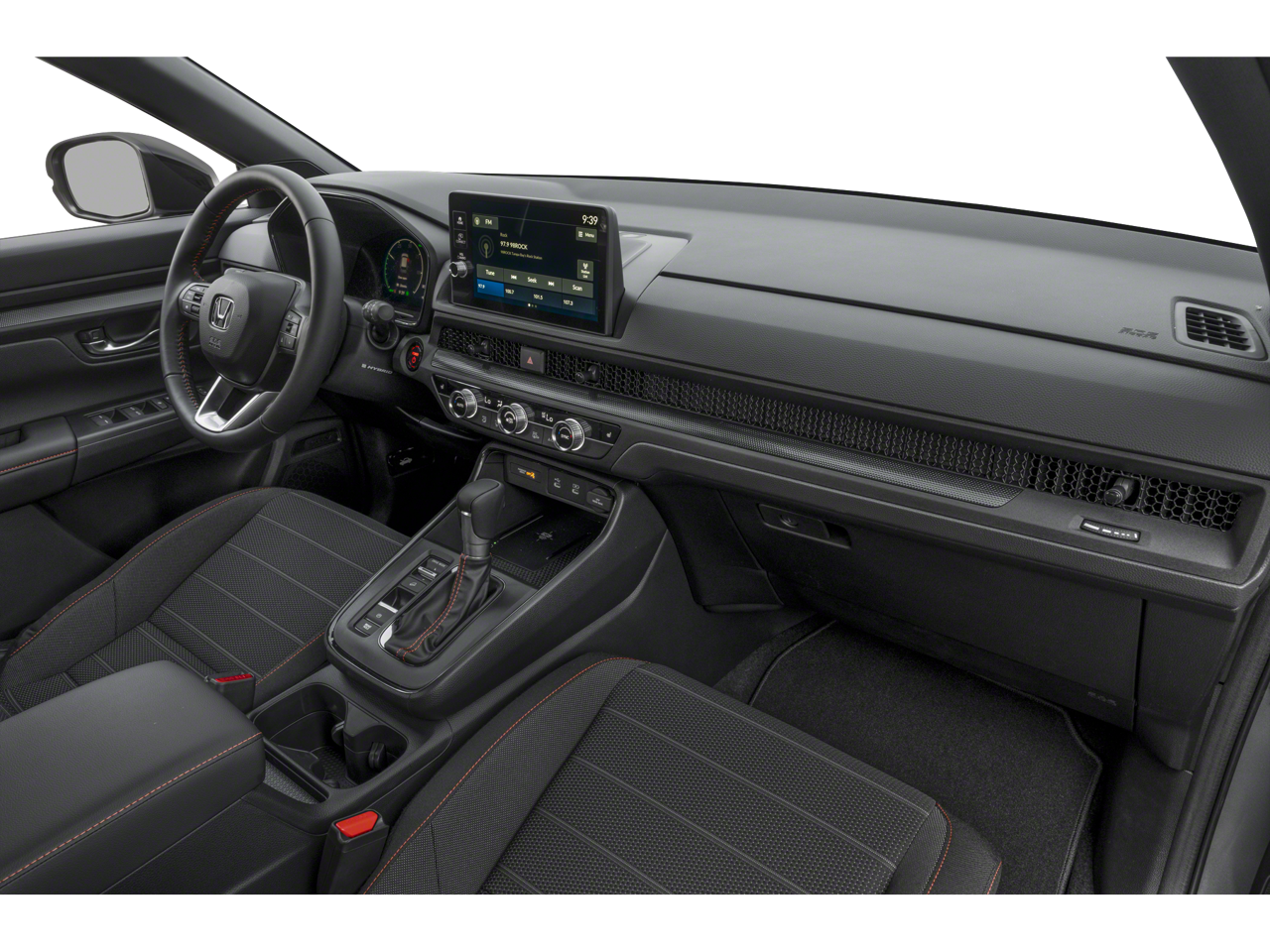 Inside the 2026 Honda CR-V Hybrid Sport, youll find a thoughtfully designed cabin built for comfort and convenience. The interior features premium cloth and leather-trimmed seating, a large touchscreen infotainment system with Apple CarPlay and Android Auto integration, and ample cargo space for passengers and gear. Advanced safety technologies, including Honda Sensing, adaptive cruise control, collision mitigation braking, and lane-keeping assist, provide peace of mind on every drive. The CR-V Hybrid Sport combines practicality, connectivity, and comfort to make every journey enjoyable and efficient.