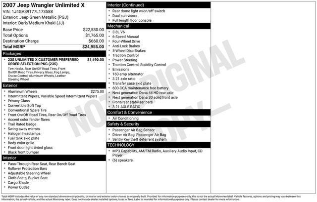 2007 Jeep Wrangler Green Unlimited X 4WD 3.8L V6 SMPI