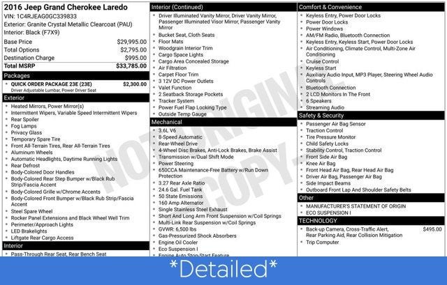 2016 Jeep Grand Cherokee Granite Crystal Metallic Clearcoat Laredo RWD 8-Speed Automatic 3.6L V6 24V VVT