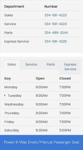 - Power 8-Way Driver/Manual Passenger Seat