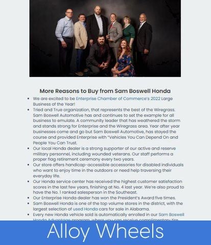 We price our vehicles to sell fast! Advertised price includes Financing Discount Through Sam Boswell Honda of $750. To save time, please call ahead to ensure it's still available. (334) 417-0408.