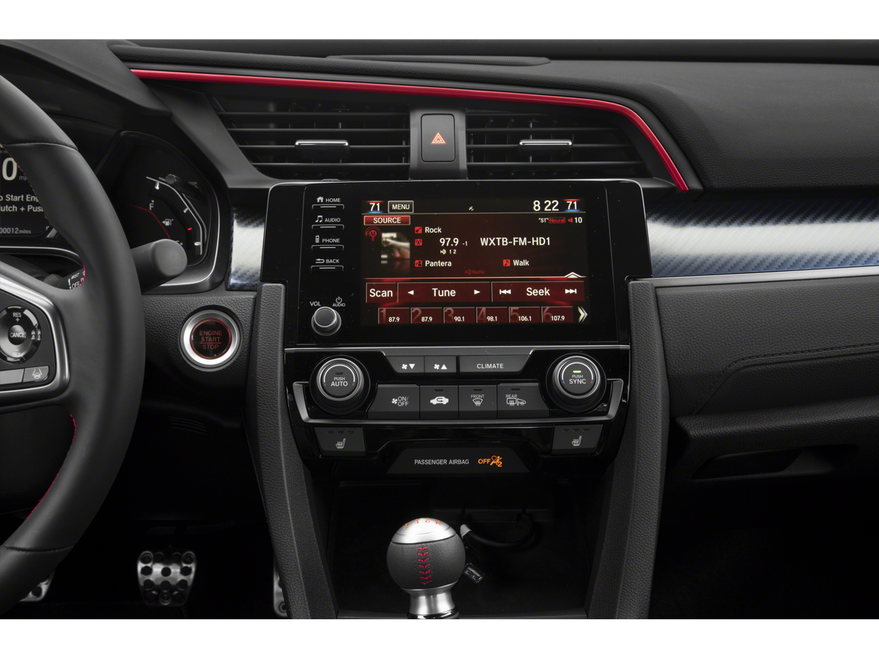 - Radio: 450-Watt Premium Audio System w/10 Speakers -inc: subwoofer, 7-inch display audio w/high-resolution electrostatic touch-screen, knob and hard keys for primary controls and customizable feature settings, HondaLink, Apple CarPlay integration, Android Auto integration, SiriusXM, HD Radio, Bluetooth® HandsFreeLink, Bluetooth® streaming audio, SMS text message function, Radio Data System (RDS), Speed-Sensitive Volume Compensation (SVC), 1.0-amp USB audio interface port in center console, 1.5-amp USB smartphone/audio interface port in front console, illuminated steering wheel-mounted controls and fin-type roof-mounted antenna