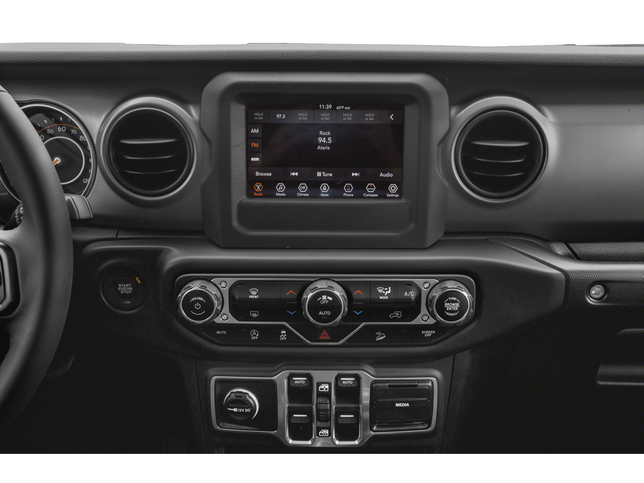 Step inside and you'll be greeted by a well-appointed interior, featuring a 7-inch touchscreen display with Uconnect 4, Apple CarPlay, and Android Auto integration. The Leather-wrapped steering wheel and automatic climate control add a touch of refinement to the rugged Wrangler experience.