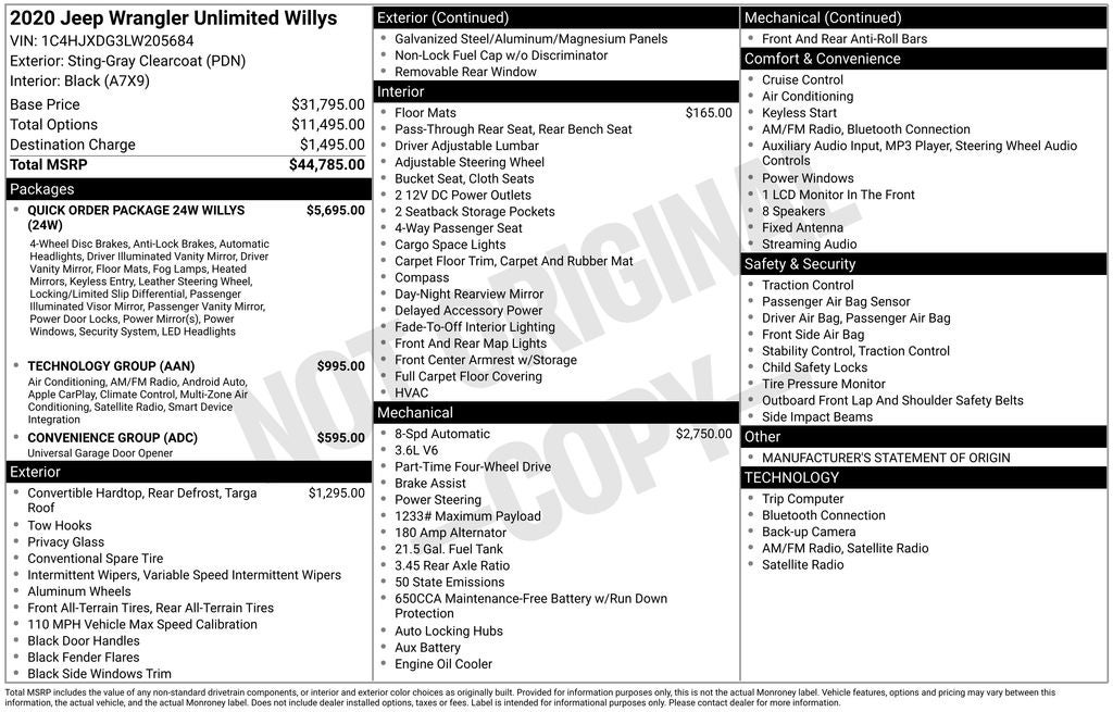 2020 Jeep Wrangler Unlimited Willys