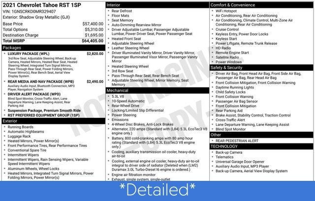 2021 Chevrolet Tahoe Shadow Gray Metallic RST RWD 10-Speed Automatic with Overdrive EcoTec3 5.3L V8