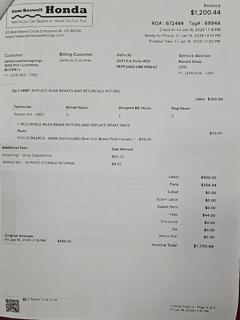 $750 Financing Discount Through Sam Boswell Honda$16,100 Sam Boswell Sale Price