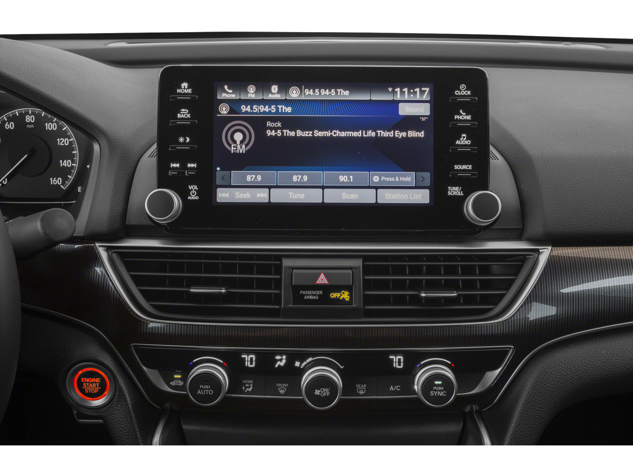 - Radio: 180-Watt AM/FM Audio System -inc: 8 speakers, 8" display audio w/high-resolution electrostatic touch-screen, knobs and hard keys for primary controls and customizable feature settings, Bluetooth® HandsFreeLink, Bluetooth® streaming audio, SMS text message function, Radio Data System (RDS), Speed-Sensitive Volume Compensation (SVC), HondaLink, Apple CarPlay integration, Android Auto integration, 2 2.5-amp USB smartphone/audio interface ports in front console, 2 2nd-row 2.5-amp USB charging ports, illuminated steering wheel-mounted controls and gloss black fin-type roof-mounted antenna