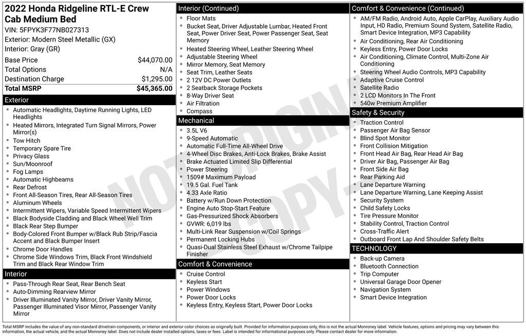 - Vehicle Name: Honda Ridgeline