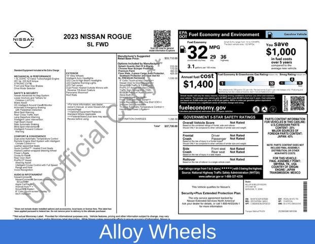 2023 Nissan Rogue Pearl White Tricoat SL FWD CVT with Xtronic 1.5L I3 Turbocharged DOHC 12V LEV3-ULEV50 201hp