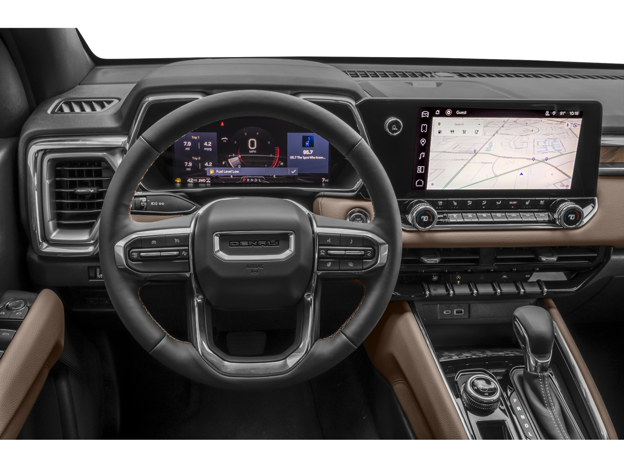 Step inside the Canyon Denali and you'll be surrounded by a wealth of premium features that cater to your every need. The spacious cabin is adorned with genuine wood accents, heated and ventilated front seats, and a Bose premium sound system that will immerse you in your favorite tunes. Stay connected with the intuitive 11.3-inch diagonal premium GMC Infotainment System, complete with wireless Apple CarPlay and Android Auto integration.